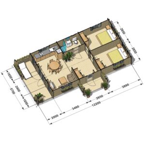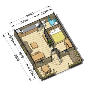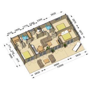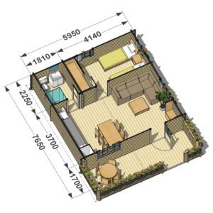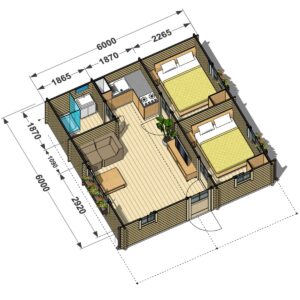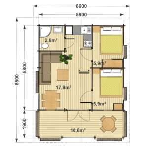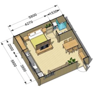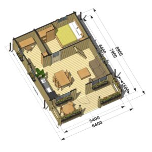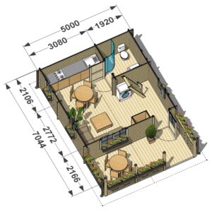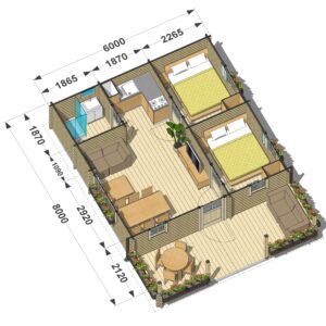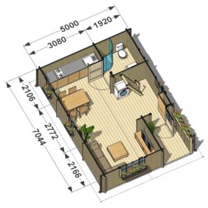 - przestronne i funkcjonalne drewniane domki letniskowe;