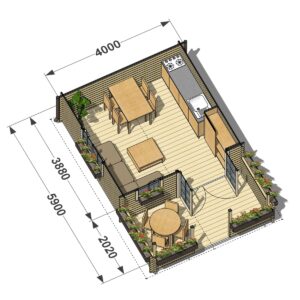 - drewniane garaże z wiatą, która może służyć jako letni taras;