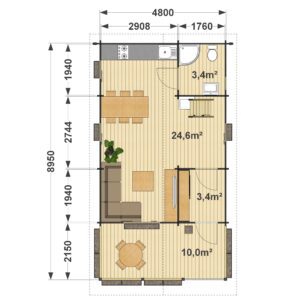 Realizujemy projekty zarówno małych całorocznych domów (od 32 m²), jak i większych powierzchniowo. Na życzenie dostosujemy nasz typowy projekt do Twoich potrzeb.