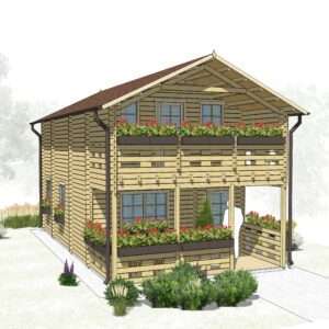 - drewniane garaże z pomieszczeniem gospodarczym, w którym wygodnie przechowywać narzędzia i sprzęt.