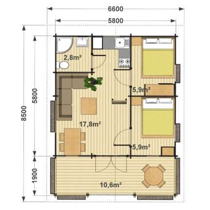 Nowoczesne domki letniskowe Horton to idealna opcja na wypoczynek dla tych, którzy pragną odciąć się od miejskiego zgiełku, spędzać czas na łonie natury i budzić się przy śpiewie ptaków oraz szumie drzew. Wykonane z wysokiej jakości drewna suszonego komorowo, domki te przetrwają dziesiątki lat, ciesząc swoją estetyką i funkcjonalnością nie tylko Ciebie, ale także Twoje dzieci i wnuki.