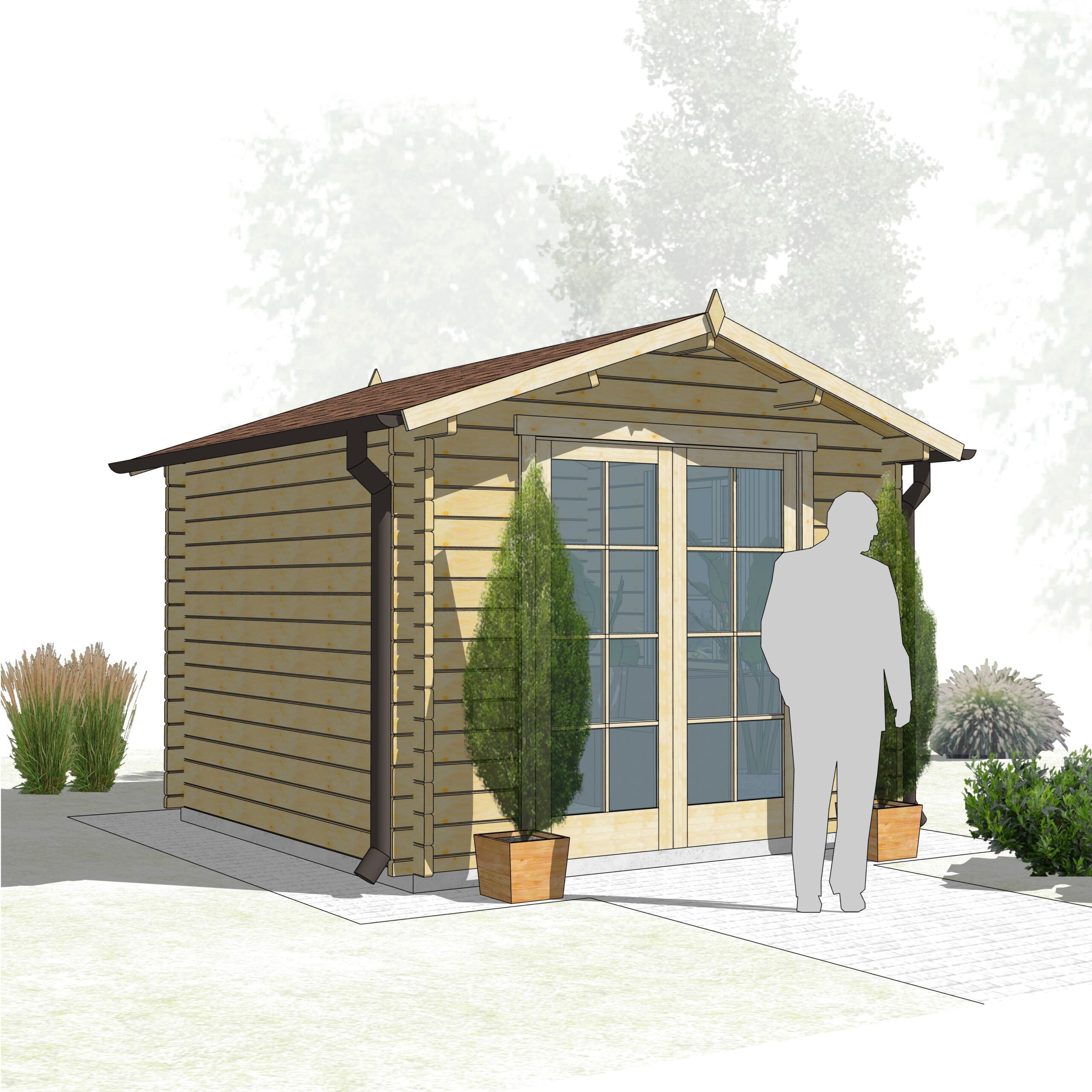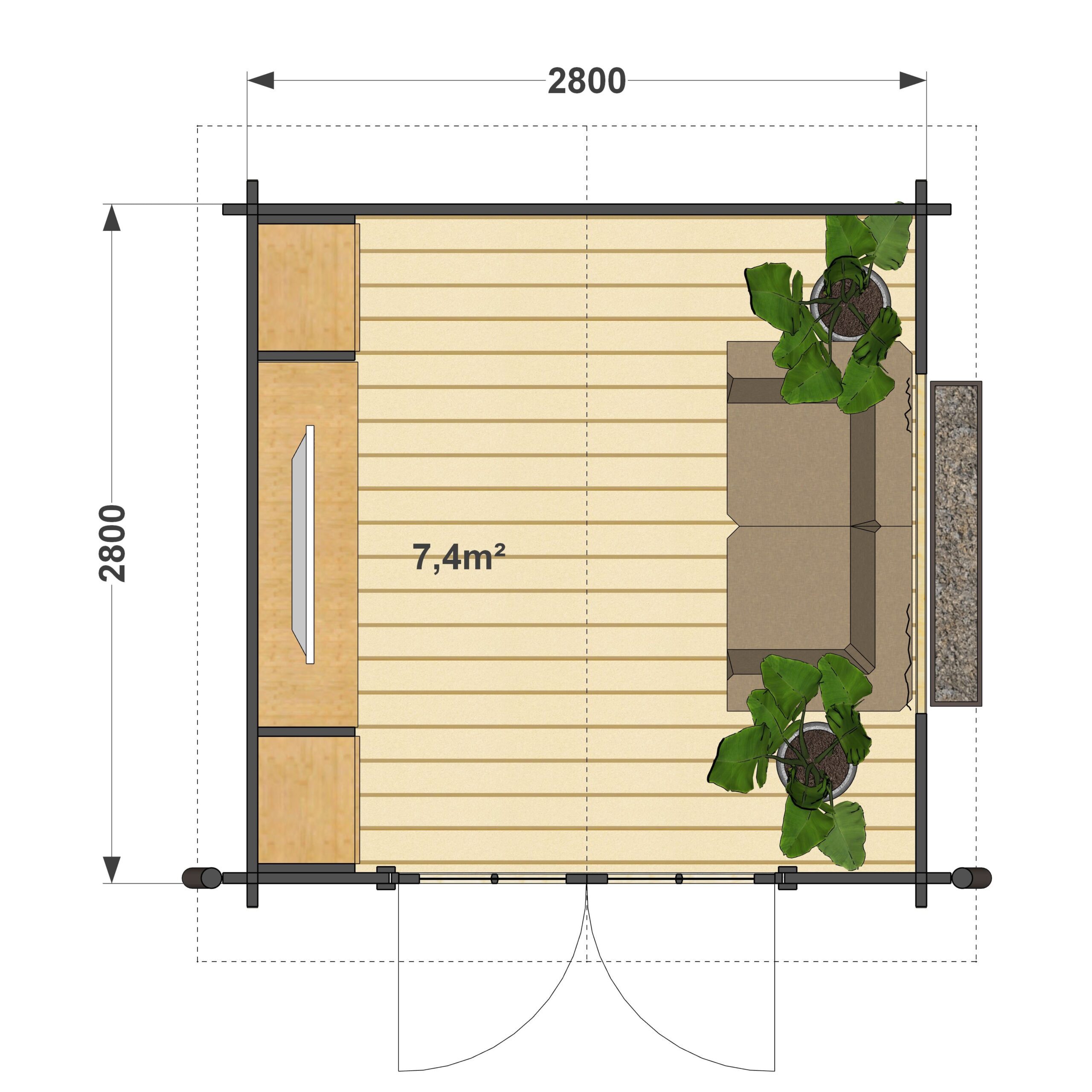 Jeśli posiadasz niewielką działkę, domek Adam będzie dla Ciebie doskonałym wyborem. Składa się z jednego pomieszczenia o powierzchni 7,4 m², które możesz urządzić według własnego gustu.
