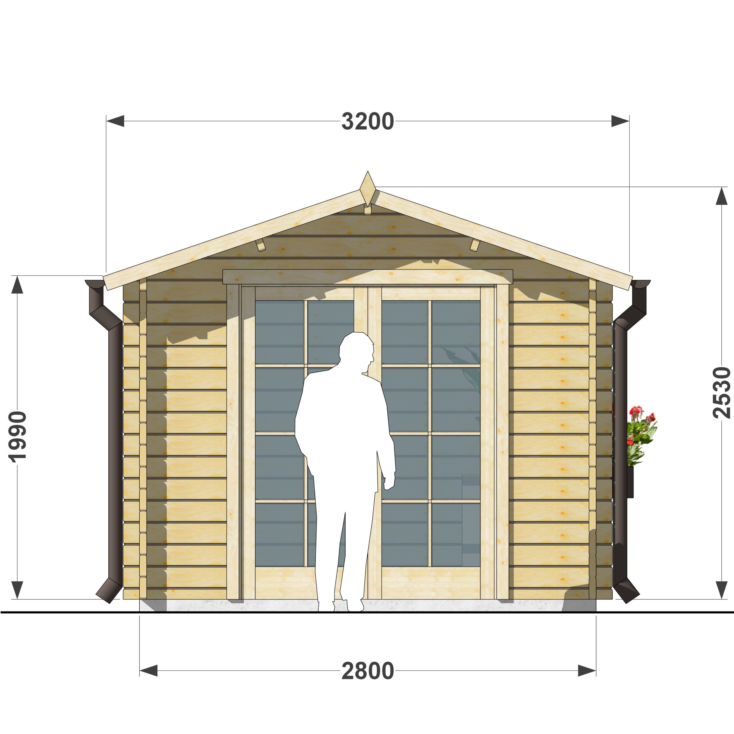 Dwuspadowy dach skutecznie chroni konstrukcję i zapewnia efektywne odprowadzanie wody opadowej. Podwójne, przeszklone drzwi ułatwiają wnoszenie dużych przedmiotów do domku, a dzięki wysokiej przepuszczalności światła pozwalają oszczędzać na oświetleniu.