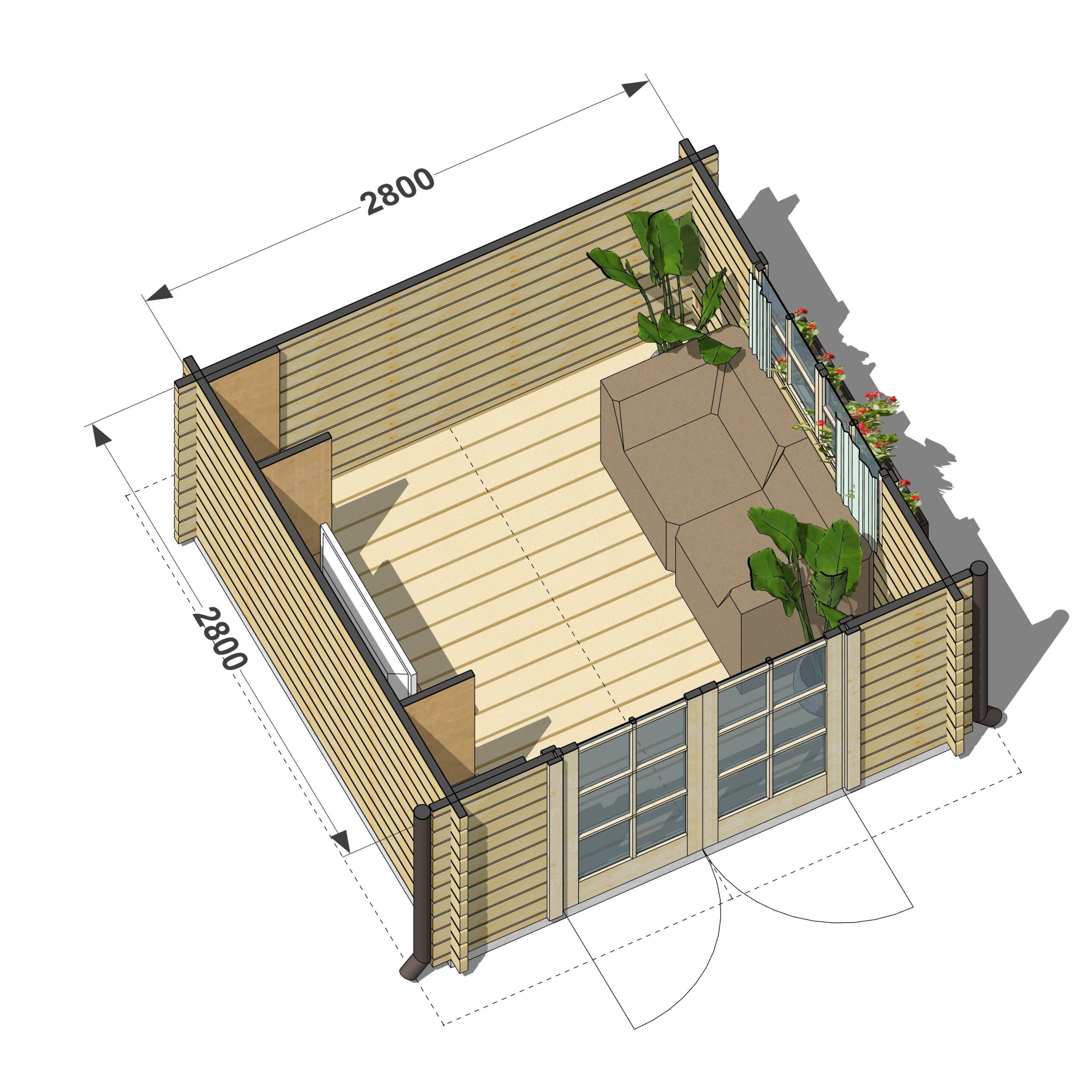 Wszystkie nasze domki letniskowe wykonane są z wyselekcjonowanej sosny lub świerku suszonego komorowo, co gwarantuje trwałość i wytrzymałość konstrukcji. Na życzenie każdy projekt standardowy może zostać zmodyfikowany, aby przestrzeń idealnie odpowiadała Twoim potrzebom.