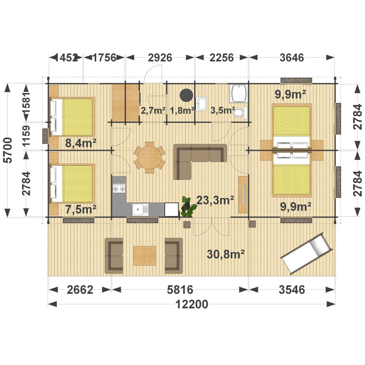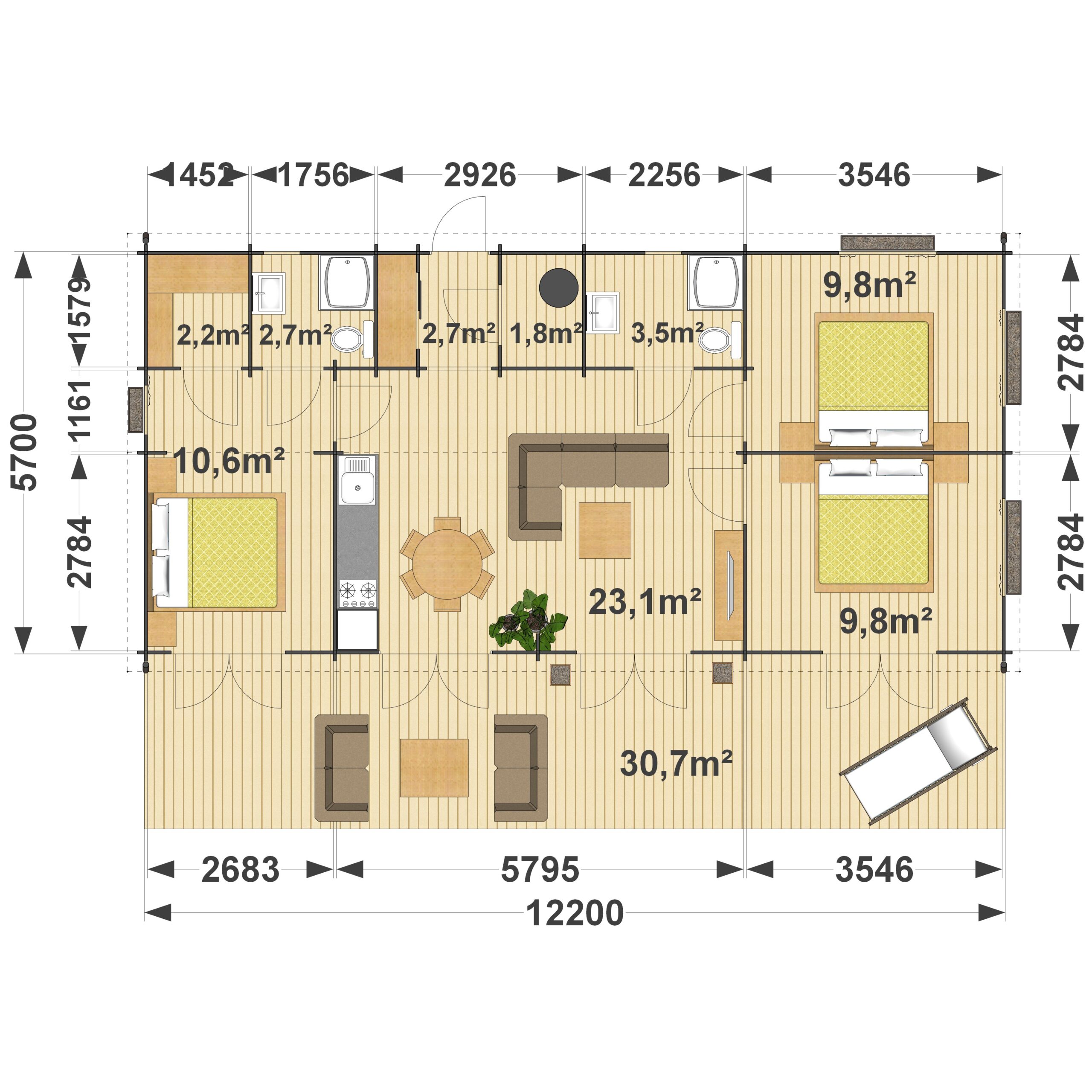 Drewniane domki letniskowe: Agnes 5.7×12,2