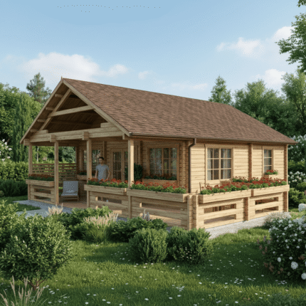 Drewniane domy całoroczne typu Agnes to przestronne, jednopoziomowe budynki, w których z komfortem zamieszkają wszyscy członkowie dużej rodziny. Doskonale nadają się zarówno na letni wypoczynek, jak i na stałe zamieszkanie.