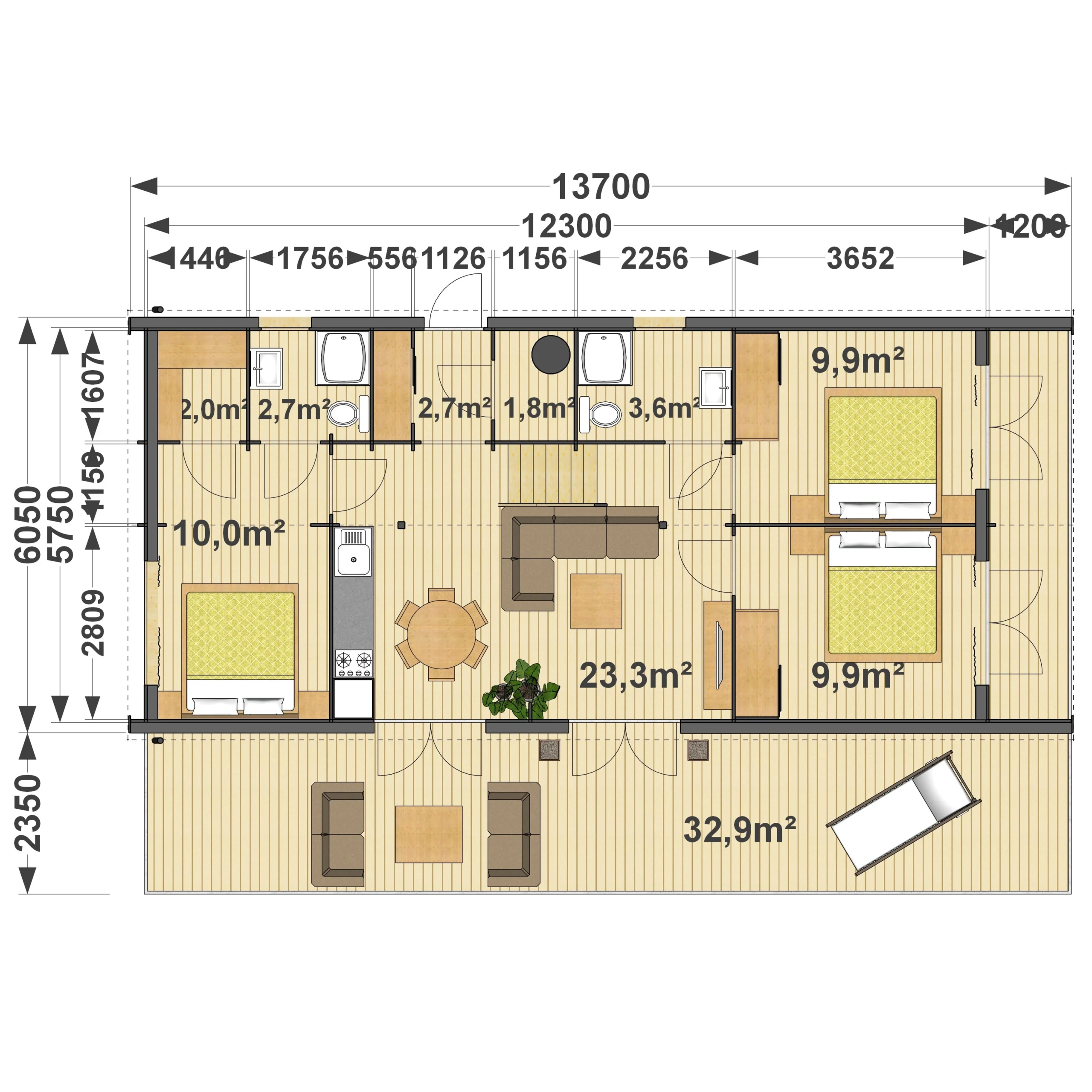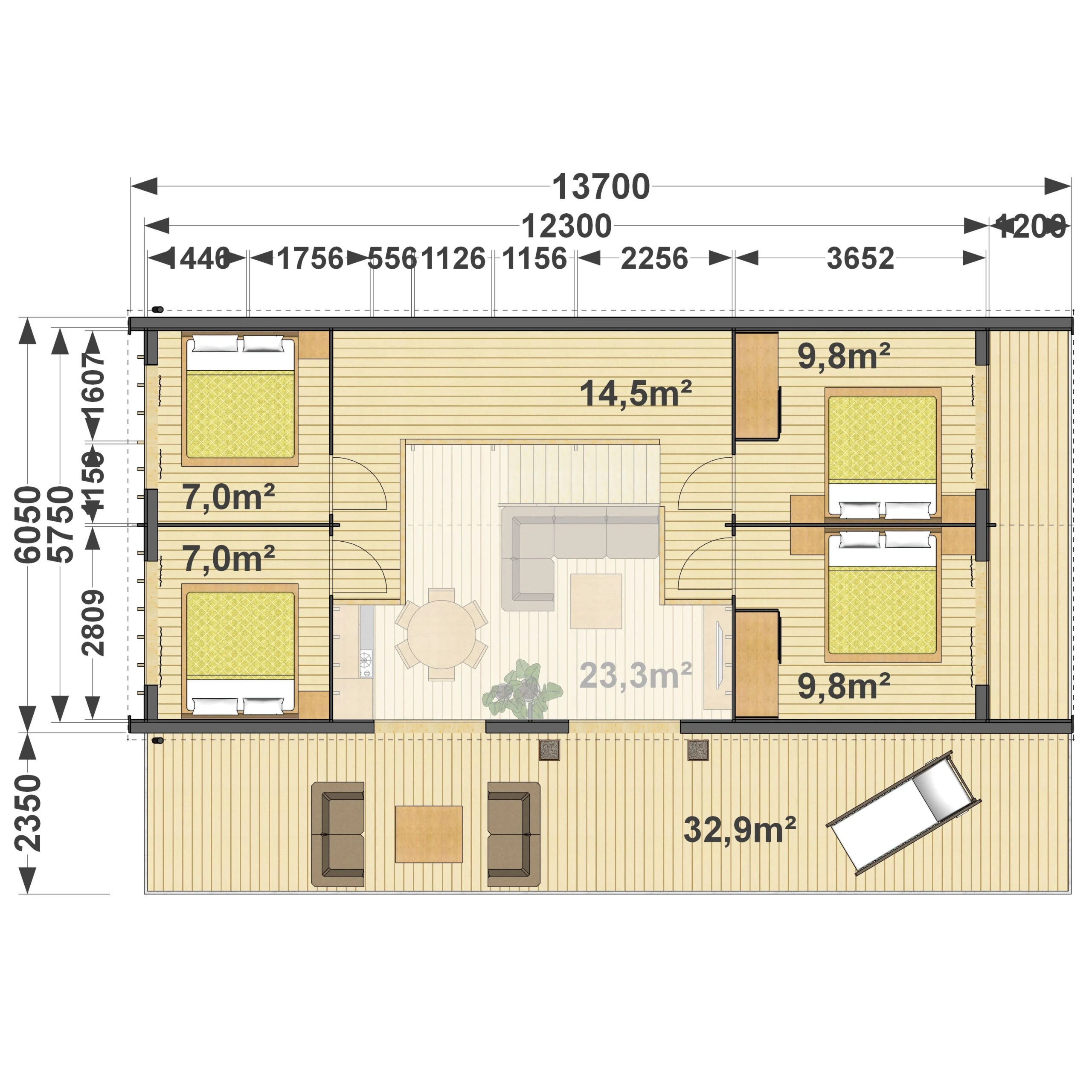 Drewniane domki letniskowe: Agnes II 5.7×12,2