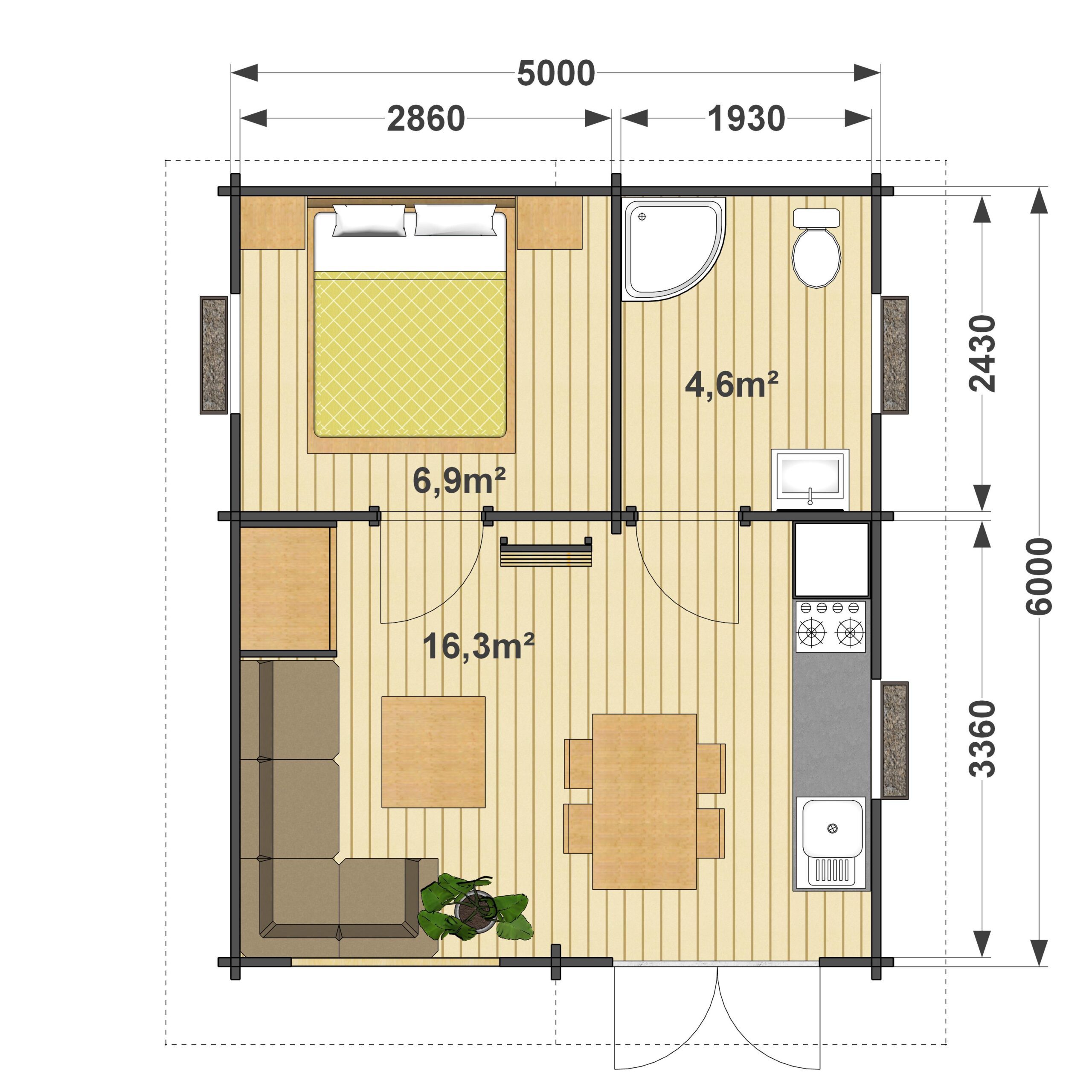 Drewniany dom 40 m²: Alberto 5,2×6,2