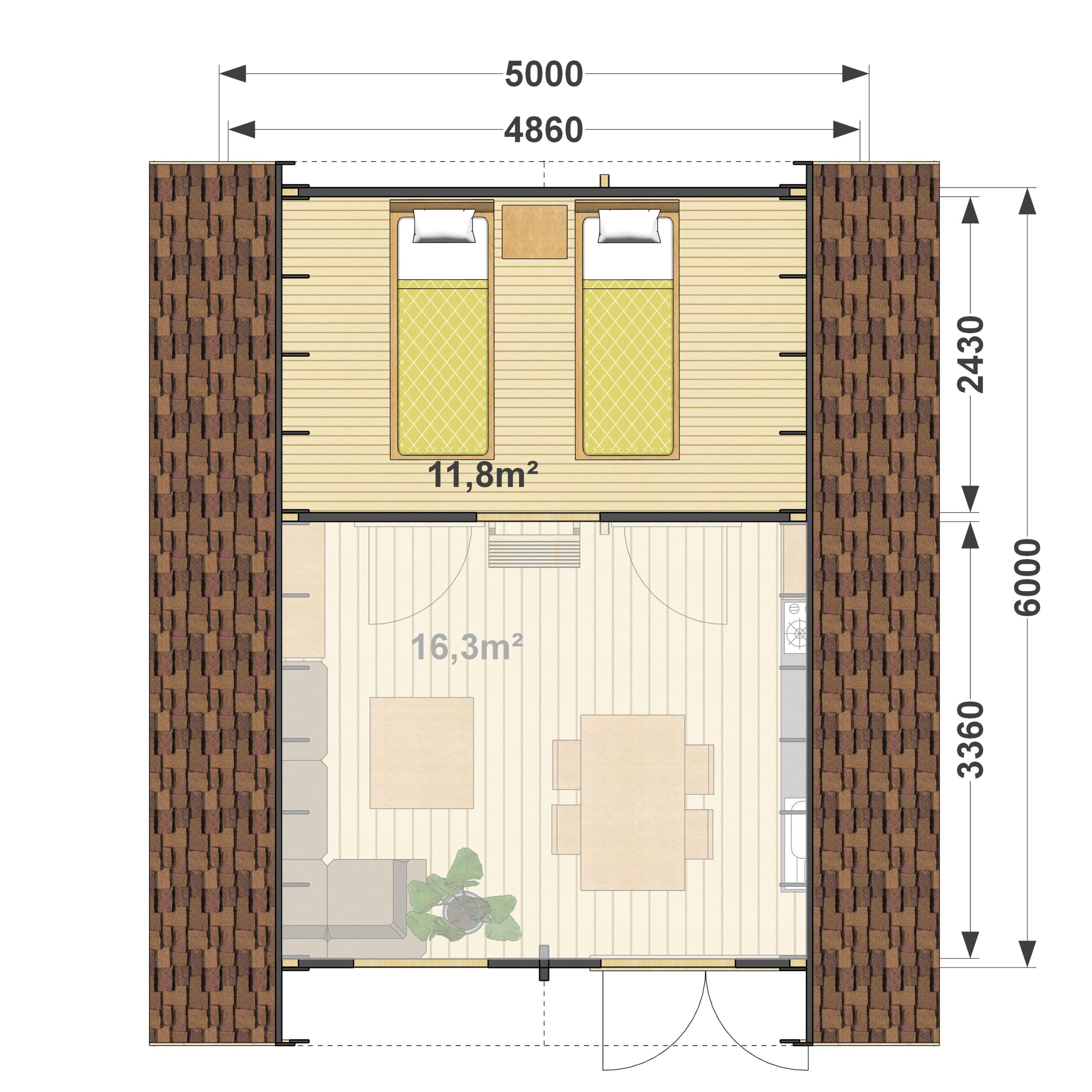 | Rozmiar zewnętrzny (m) | 5000×6000 |