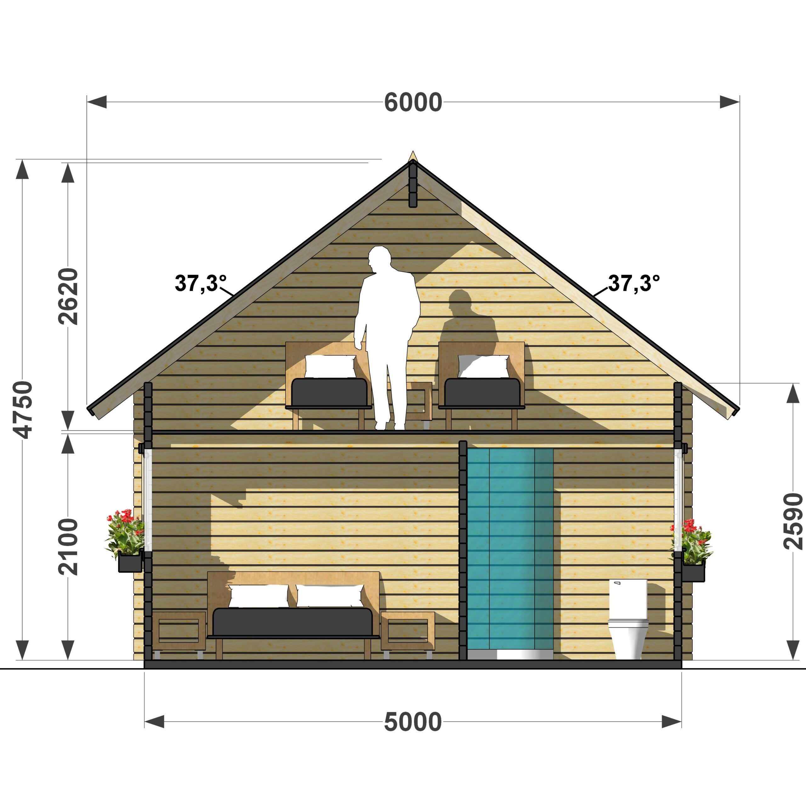 | Kąt nachylenia dachu ° | 37.3 |