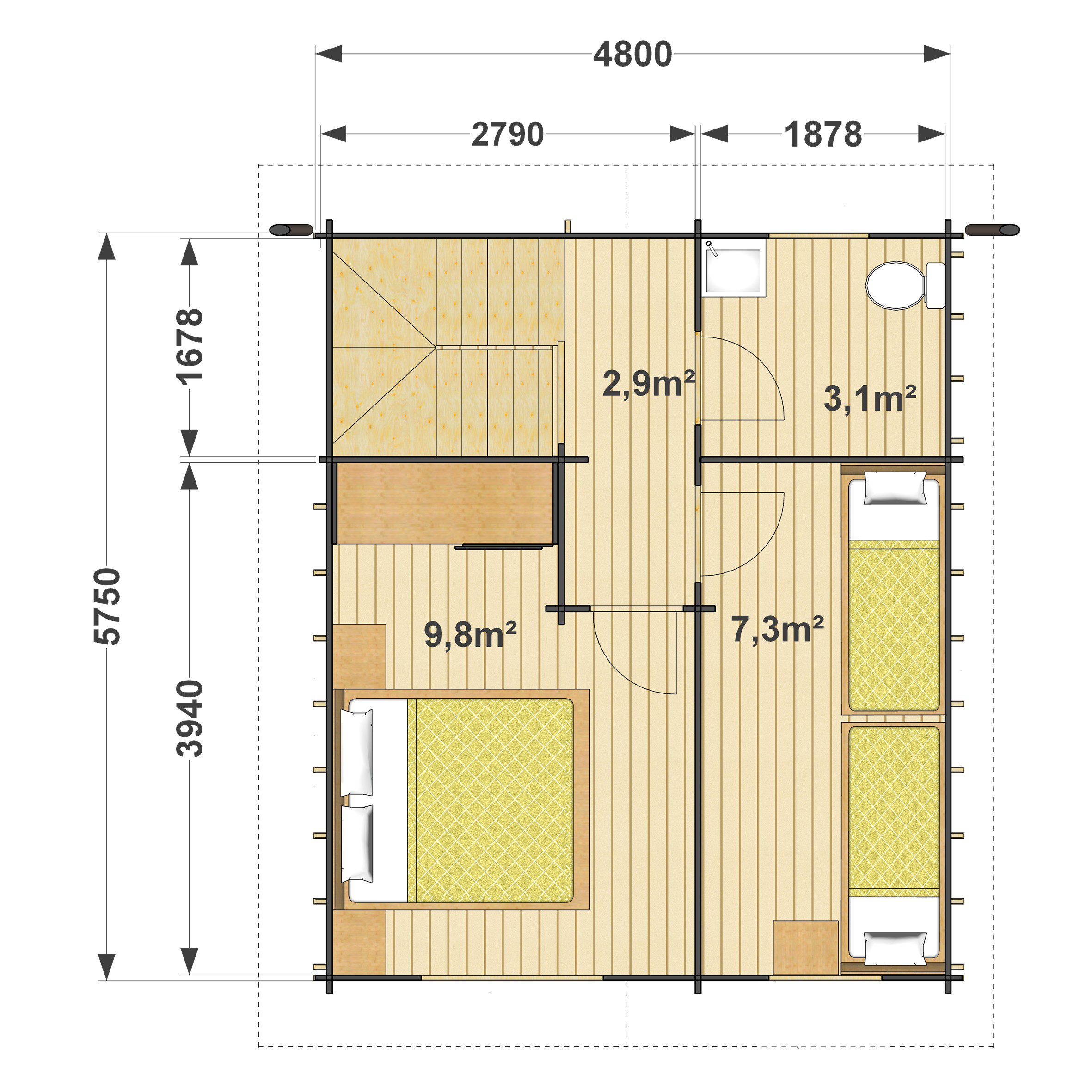 | Powierzchnia domku użytkowa (m2) | 49.5+taras 9.2 |