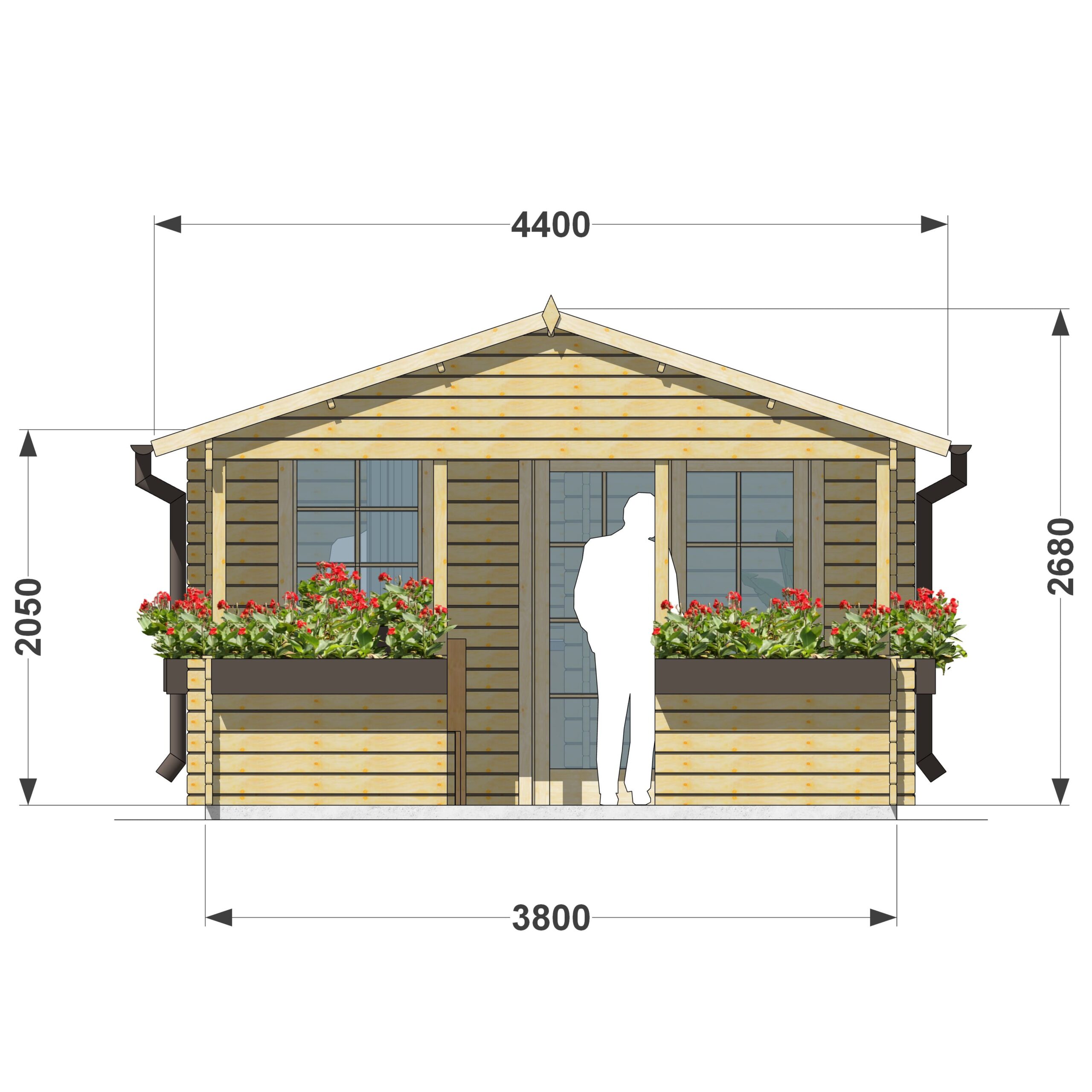 - dwuspadowy dach nadaje domkowi stylowy wygląd i chroni go przed warunkami atmosferycznymi