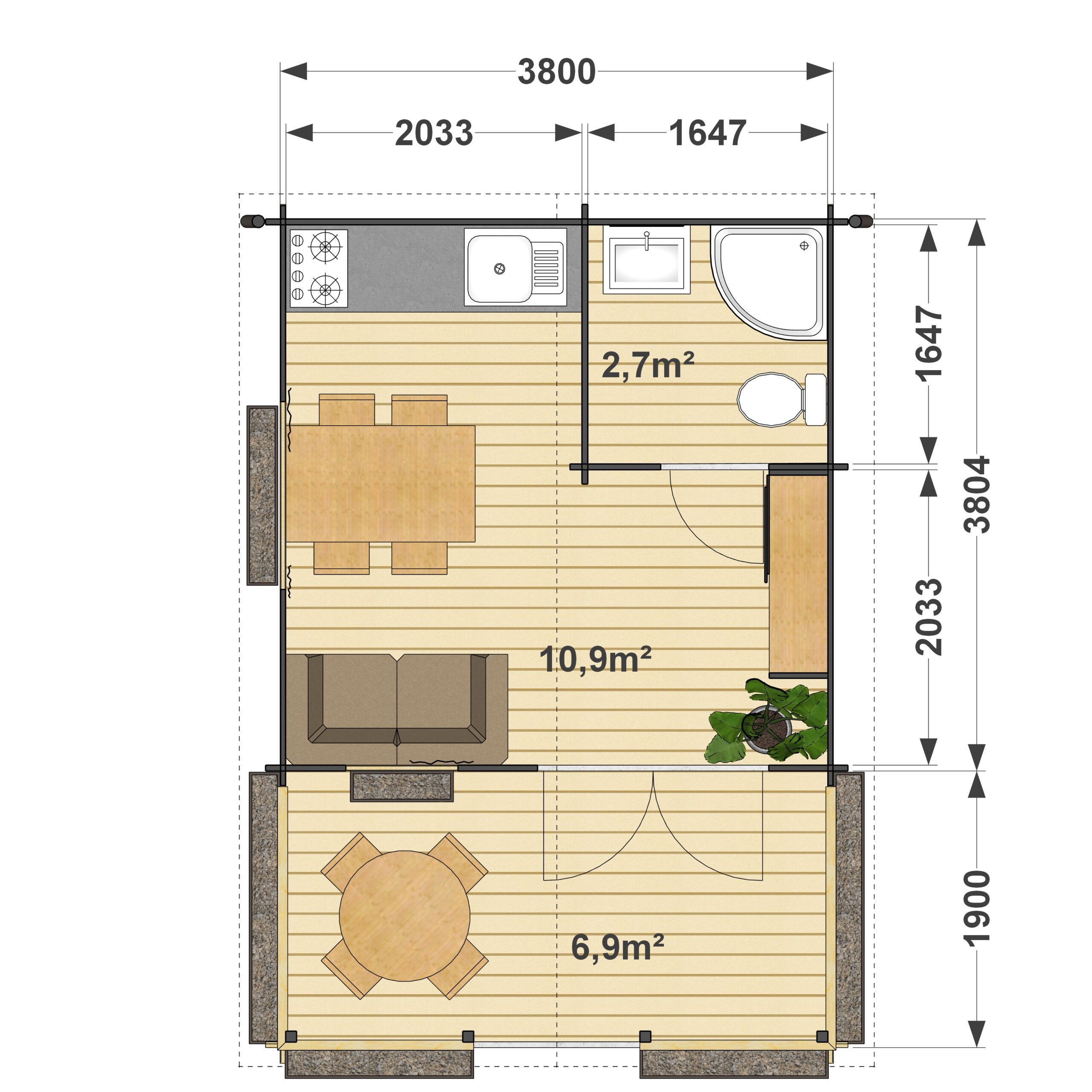 | Taras | tak (6,9m2) |