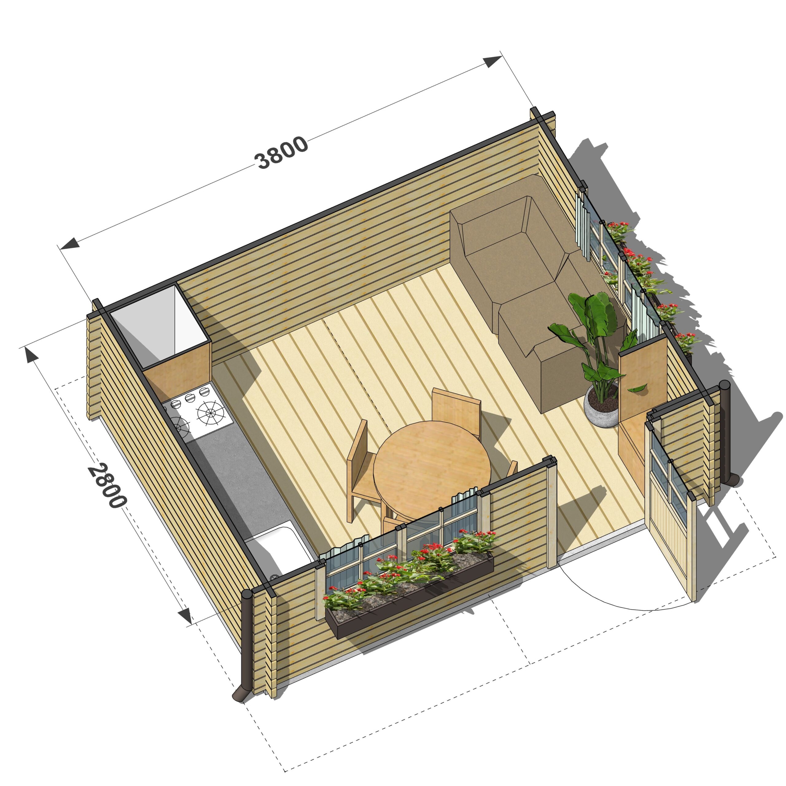 | Rozmiar zewnętrzny (m) | 3800×2800 |