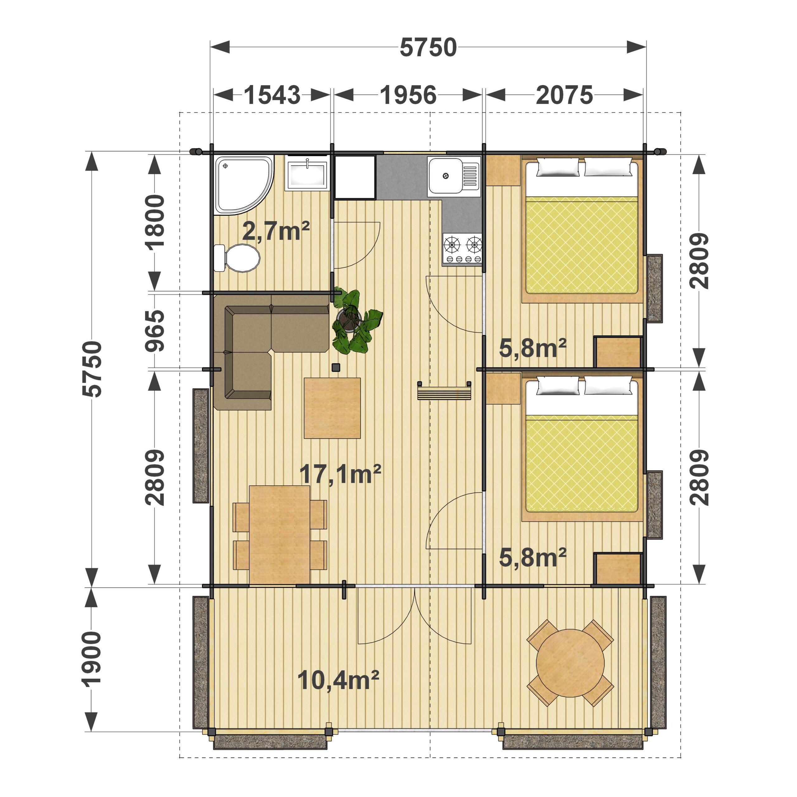 | Rozmiar zewnętrzny (m) | 5,8×5,8 |
