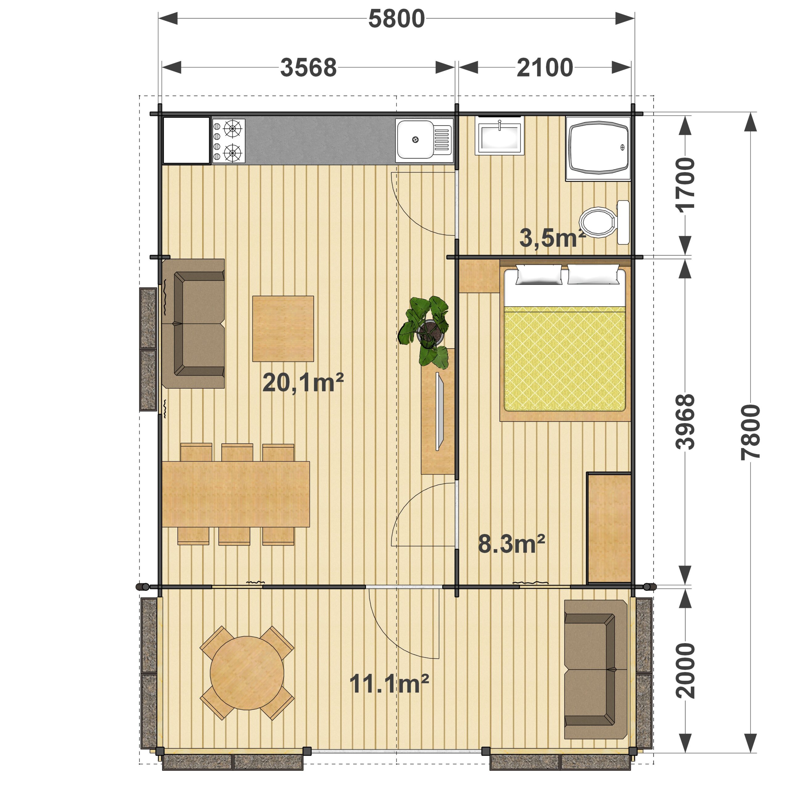 Drewniany domek letniskowy: Katerina III 6×6 + taras
