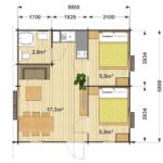 Nowoczesny drewniany dom Katerina IV to kompaktowa, ale bardzo przytulna opcja o powierzchni 32,1 m², idealna dla małych rodzin. W jego centrum znajduje się jasny pokój dzienny o powierzchni 17,3 m², w którym można ustawić małą sofę, stół na rodzinne posiłki i kącik kuchenny do przygotowywania posiłków.