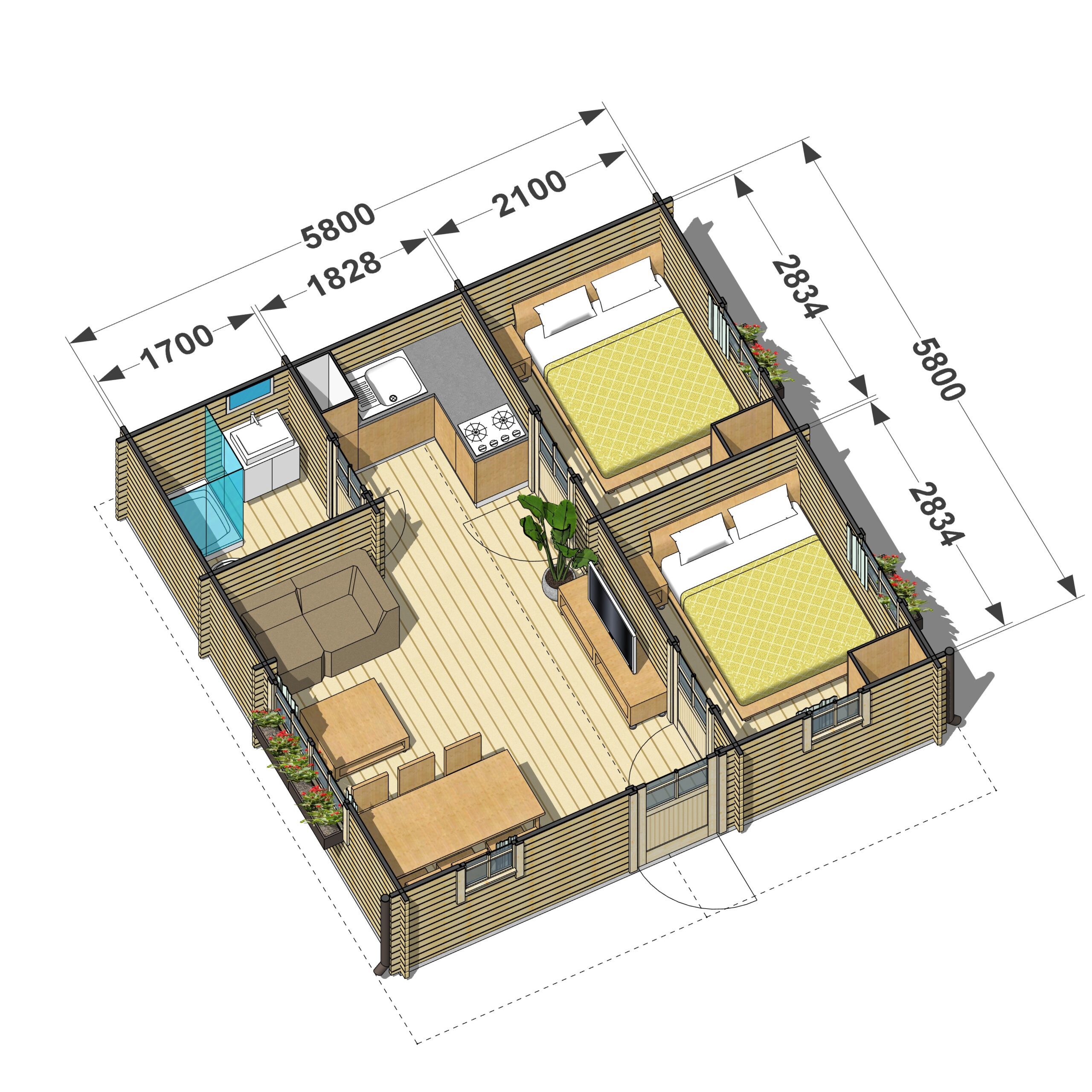 | Rozmiar zewnętrzny (m) | 5,8×5,8 |