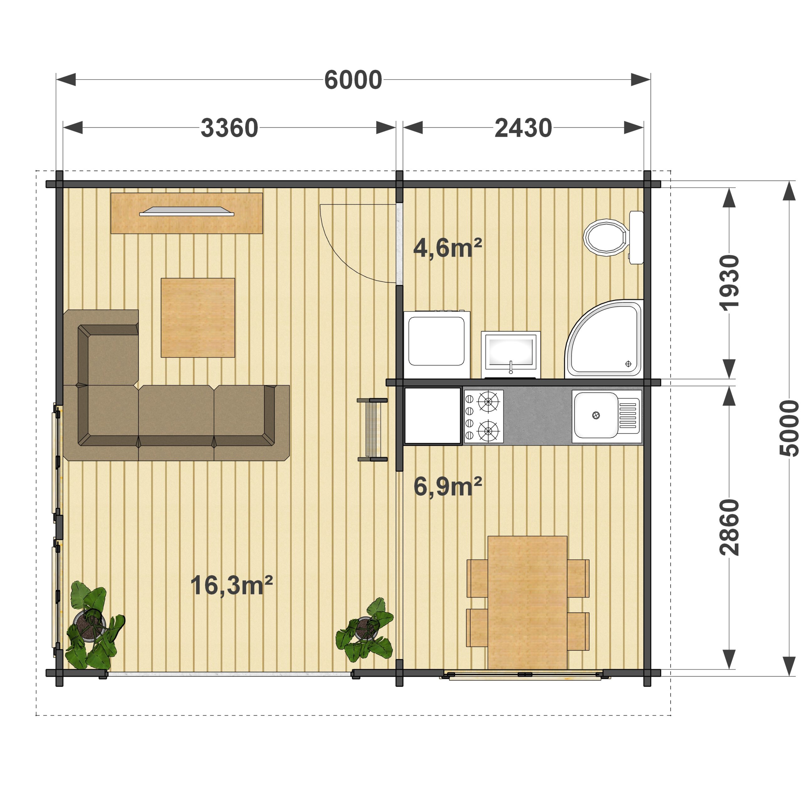 | Rozmiar zewnętrzny (m) | 6000×5000 |