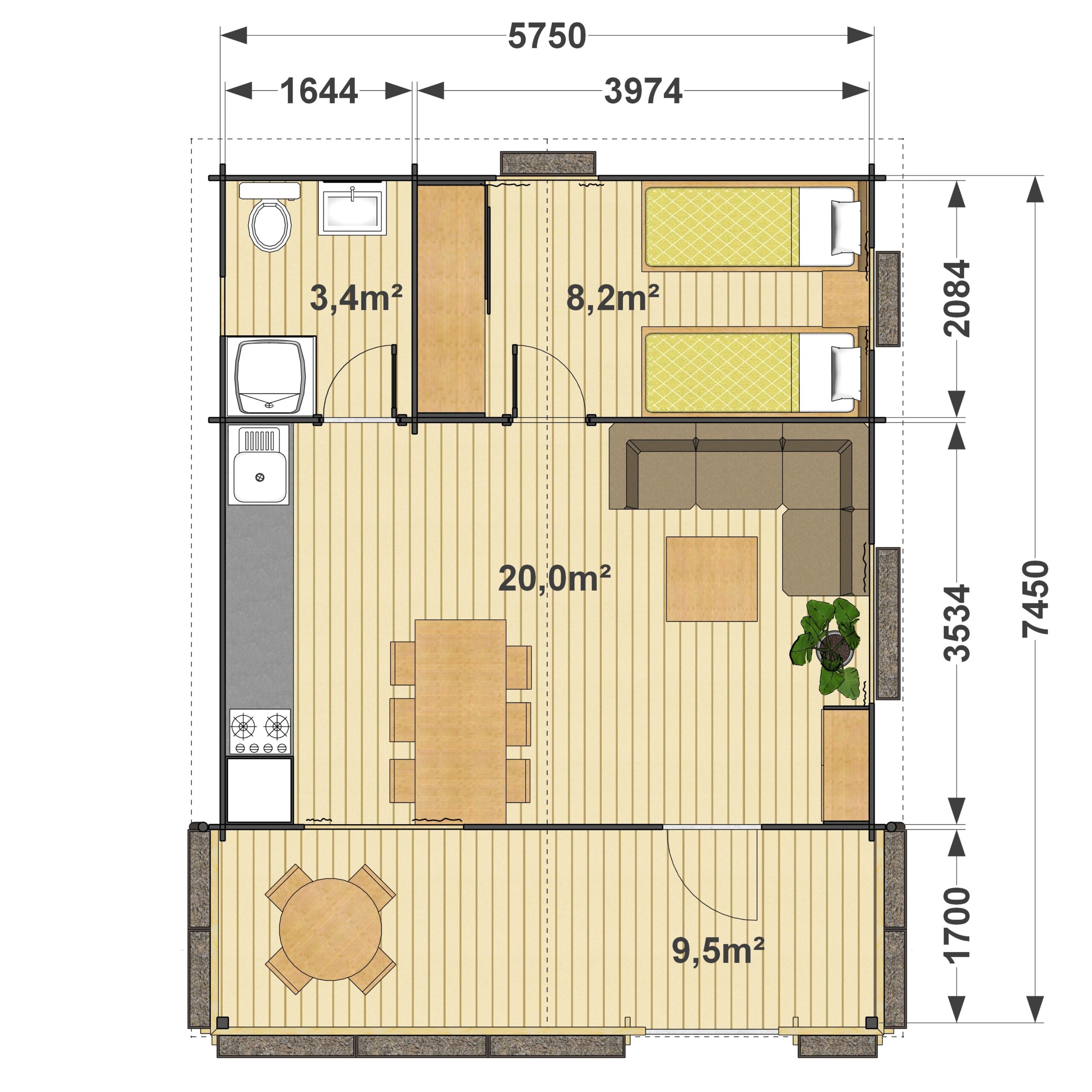 | Rozmiar zewnętrzny (m) | 7450×5750 |