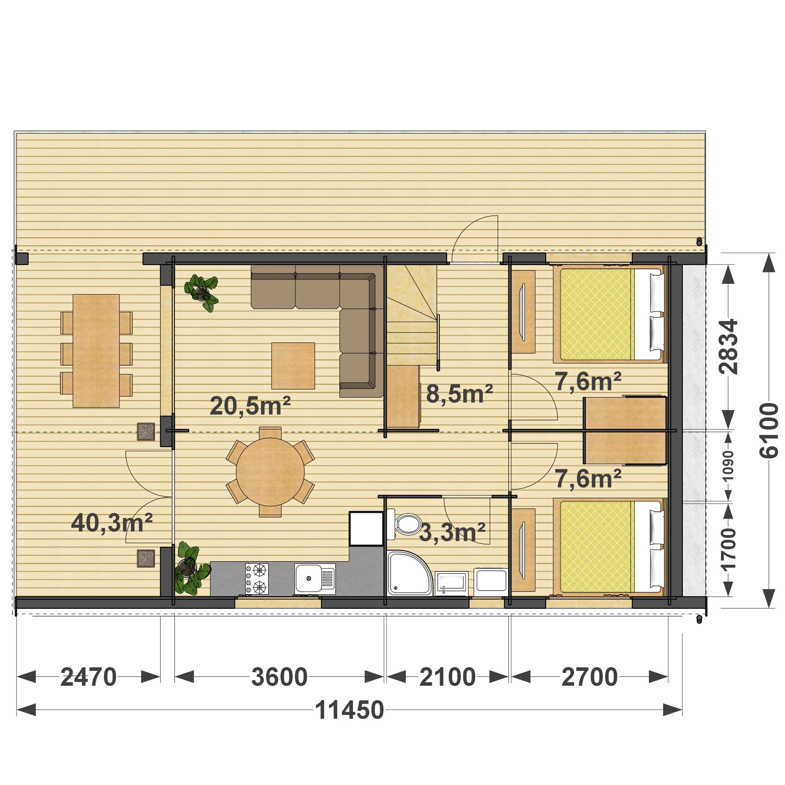 | Powierzchnia domku (m2) | 69,8 |